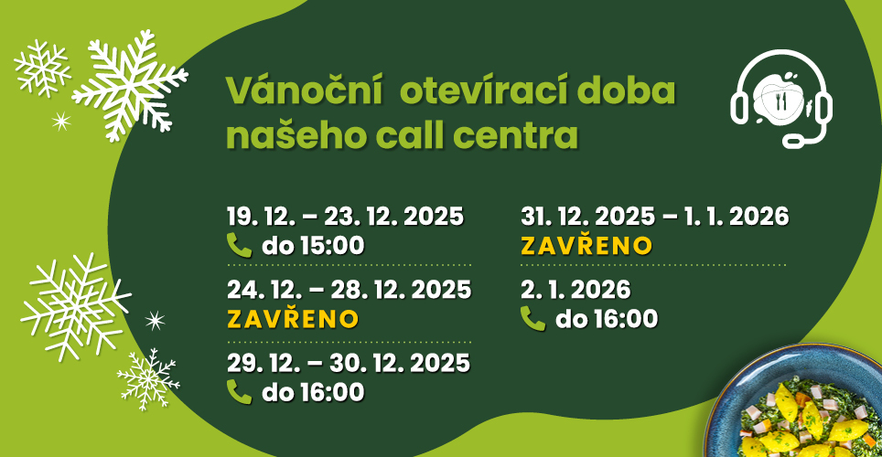 15. 12. 2025I během svátků chceme být co nejvíce s vámi a reagovat na vaše podněty, dotazy i změny v objednávkách. Níže najdete speciální provozní dobu našeho call centra během Vánoc a Nového roku 🥳